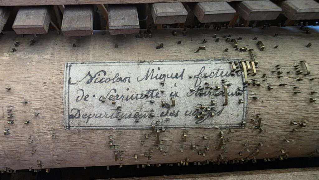 | JEANDEL Nicolas Actif en 1809. Espagne / Toulouse Etiquette sur une serinette : « Facteur d’orgues à touches et cylinndre, Forte piano Change les airs à volo,nté aux insrumens à Cylindre. Accorde les pianos et prend des Abonnemens Répare harpes et instruments à cordes. Donne des leçons d’ac.. Loue des pianos« |